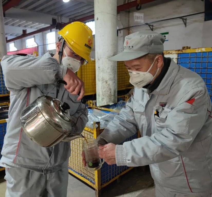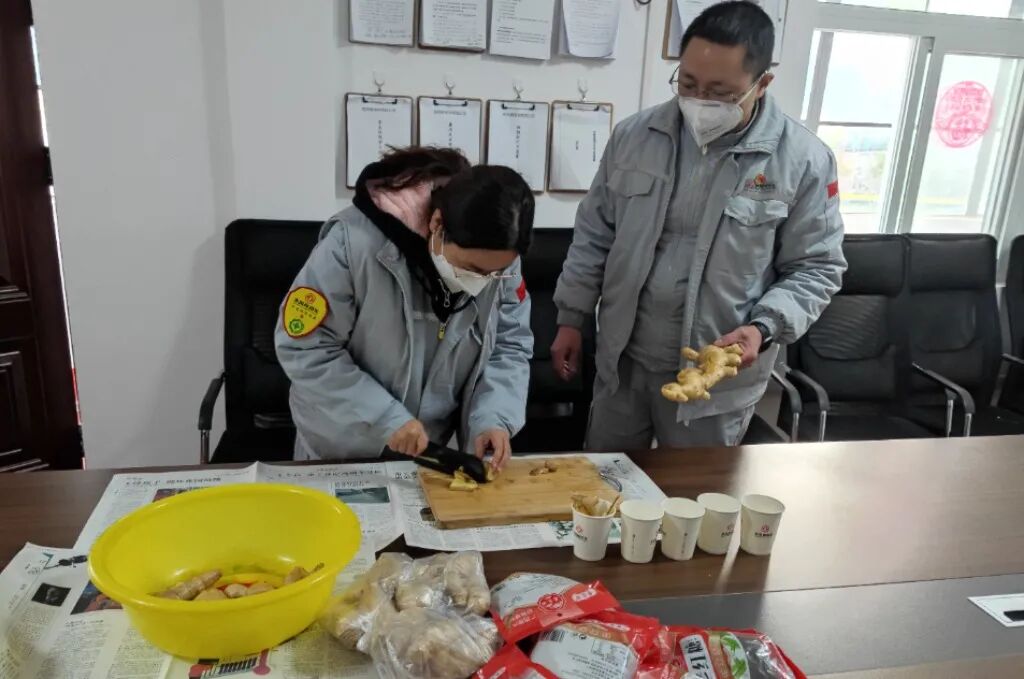 在物流公司,车身物流科科长何强一早就买好了生姜和红糖,清洗干净,送到各班组。“来,煮点姜茶,招呼大家喝点驱寒。尤其是夜班,天气寒冷,一定要注意保暖,休息时赶紧加衣服,保持一定距离,非常时期更要加强个人防护!”