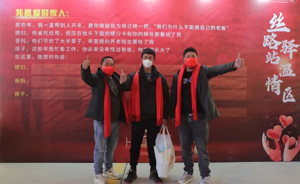 在丝路驿站温情区,搭设了“给家人的一封信”展板,卡友可以自行书写对父母、妻子、子女的心里话,表达在外奔波的硬汉柔情。