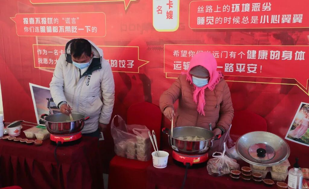 在丝路上的味道区,东风商用车特地邀请当地卡嫂参与包饺子,让出门在外的卡友感受团圆氛围,品味家乡滋味。