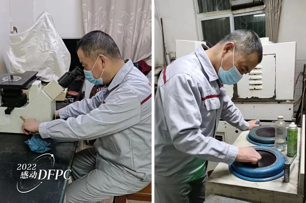 11月底,受疫情影响,金相检查班只能派出一人参与驻厂保供,杨新舟积极响应号召,驻厂8天,完成保供任务。平日里,金相检查班实行的是四班三倒的工作制度,24小时不间断对送检的样件进行金相检查。切割样件、抛光、精磨、腐蚀、观察样件内部金相组织、出具样件金相组织报告单……杨新舟一个人承担了需要三个人来完成的检查任务,几乎没有睡过一个“囫囵觉”。这8天时间里,他一共完成了126件各类螺栓样件的金相检查任务,为车间的生产和工艺调试,及时提供了精准有效的金相检查报告和数据,为抗疫保供贡献力量。