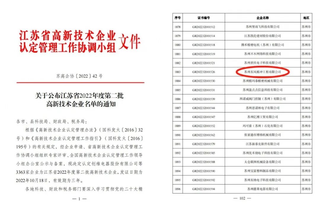 苏州东风精冲成立于1999年,是一家专注于汽车变速箱操纵系统、驻车系统、精冲零件和氢燃料电池金属极板研发设计、智能制造的高新技术企业。多年来,苏州东风精冲坚持科技创新,注重创新成果的转换,通过自主研发,获得授权发明专利12项,实用新型15项。