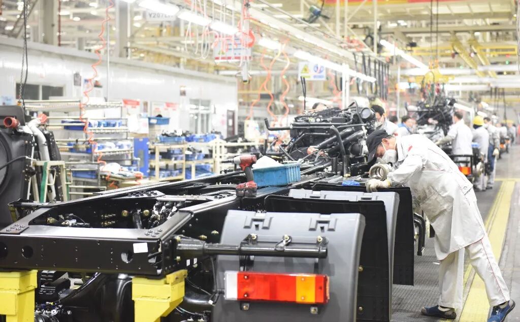 “助力品牌向上,2023,加油!加油!加油!”1月3日,在东风商用车新疆有限公司,新年第一辆东风商用车从新装配十线缓缓下线,近10名员工在线边喊出新年心愿。