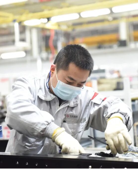 车间整洁明亮,员工马力全开。“去年12月下旬,我们搬迁到装配十线,经过前一阵产能拉练,单班产能已提升至60辆。”装配车间副主任朱江涛表示,搬迁后,车间全员加班加点,驻扎现场解决问题,确保产能提升任务按期达成。