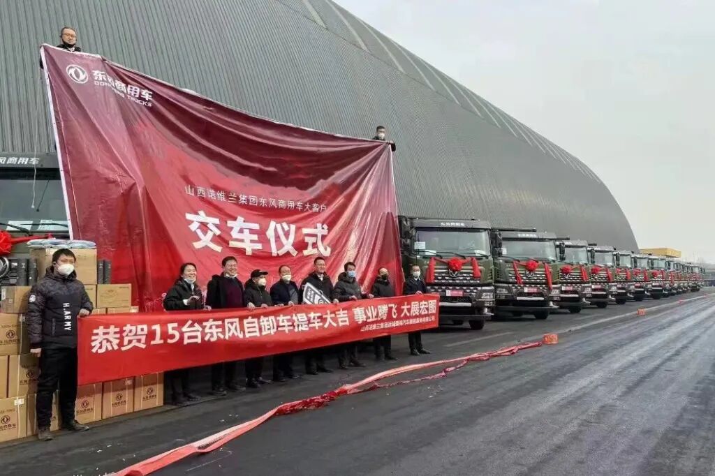 在山西运城,15辆东风天龙KC自卸车交付行业客户。“深化与区域型行业客户的合作,是推动销量目标达成、实现品牌向上战略的重要抓手。”山西商代处经理王喆说道。