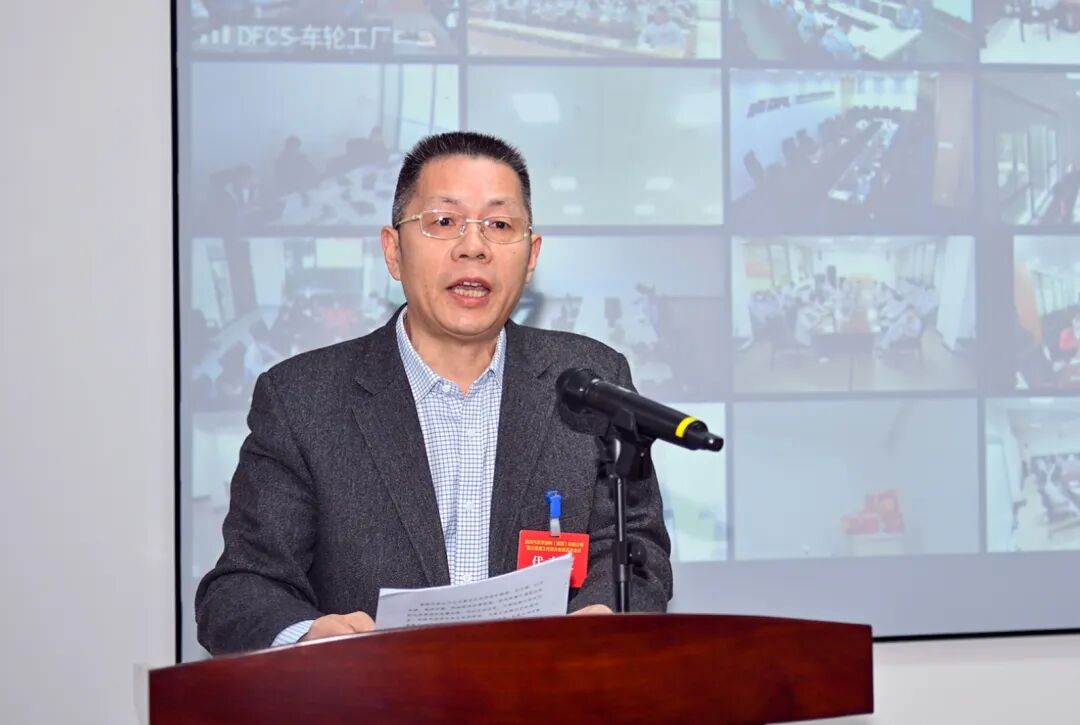 ▍东风零部件集团提案工作委员会主任、东风汽车底盘系统有限公司党委书记彭成伟作提案工作报告,东风公司劳动模范、东风汽车底盘系统有限公司员工陈卫锋向全体员工发出倡议