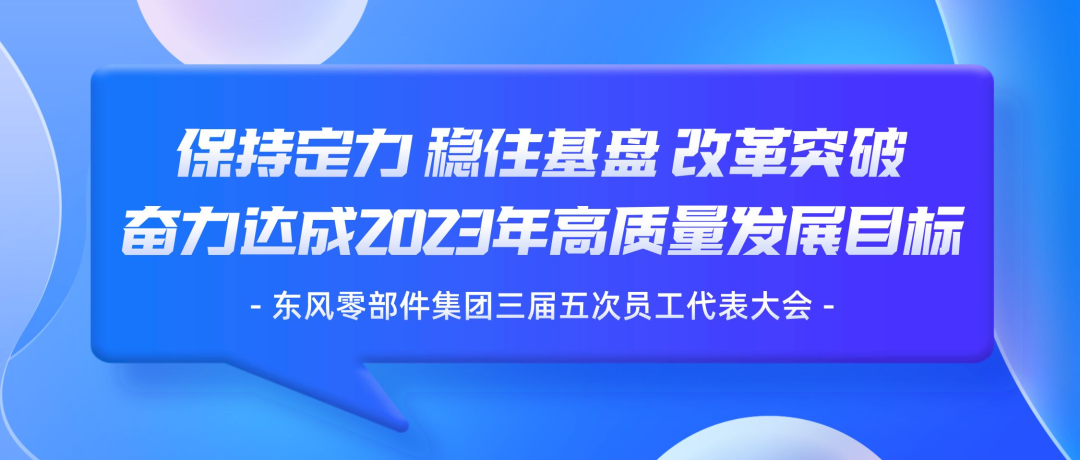2月20日,东风汽车零部件(集团)有限公司以视频连线的方式召开第三届员工代表大会第五次会议暨2023年劳动竞赛动员会。会议号召全体干部员工以“稳增长、勇创新、抓改革、强党建、促发展”为工作主线,聚焦产品结构、市场结构、资本结构调整,突出创新力、盈利力、组织力、治理力提升,坚定信心,改革突破,加快提升核心业务系统化竞争力,确保全面完成经营改革发展各项任务。