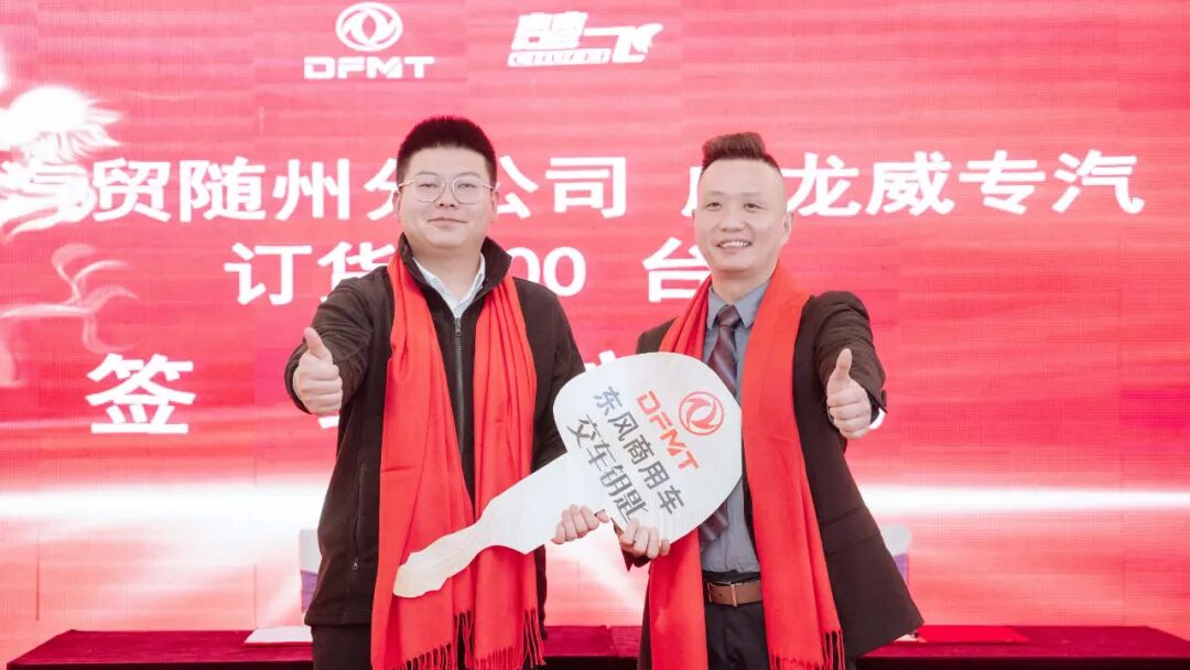 会上,东风汽贸随州分公司与成龙威专汽签署500辆危化底盘合作协议,其中终端客户现场订购398辆危化整车。