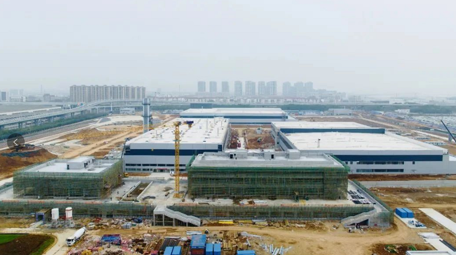 ▲猛士科技园万马战犹酣,叉车、铲车交替作业,车间内,设备正在安装。