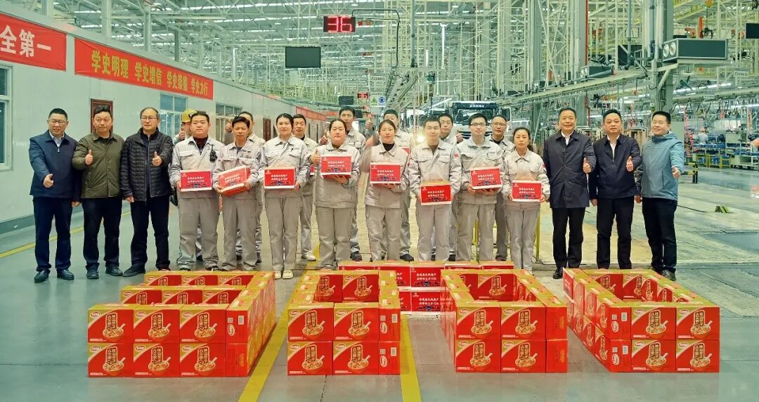 为了奋战一季度高产,所有一线员工克服各种困难,加班加点全力保障高产任务达成。此次慰问,东风商用车党委和工会下拨100万元专项资金,为奋战在高产一线的员工购买慰问品。