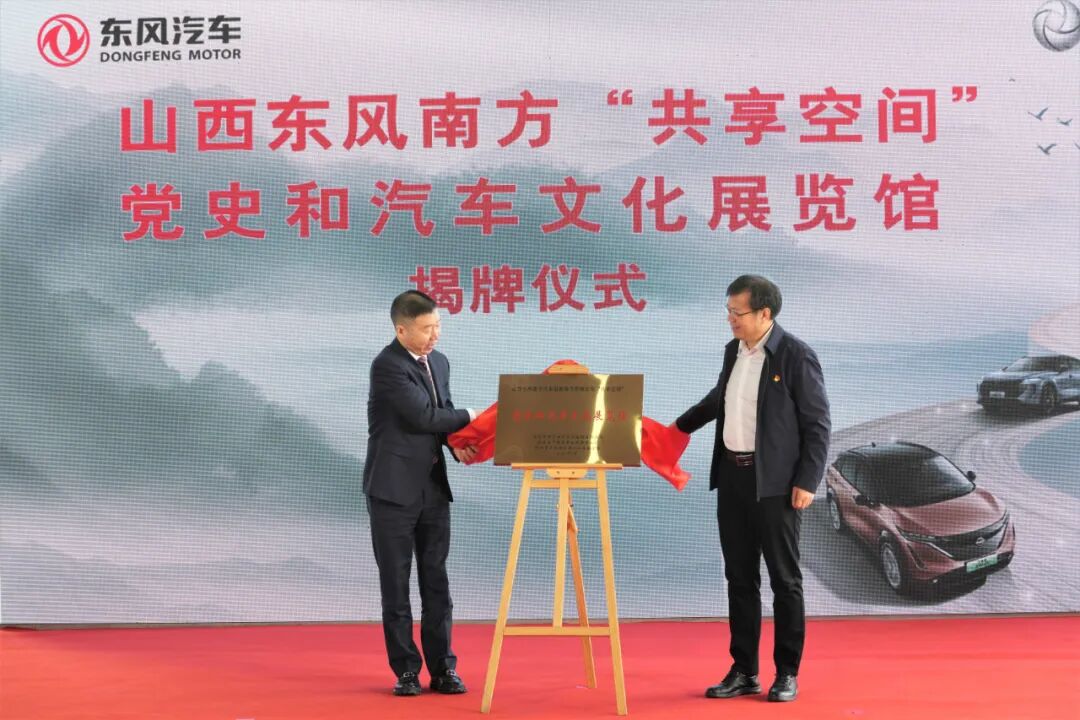 ▲靳军、张玉庆为山西东风南方“共享空间”党史和汽车文化展览馆揭牌