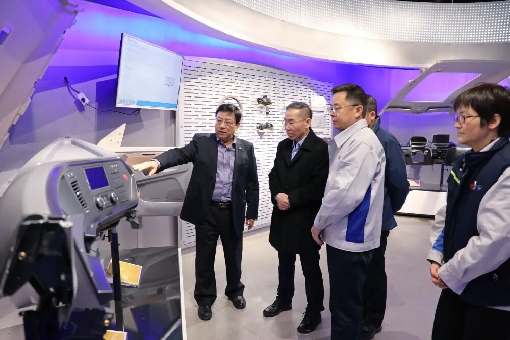 陈兴林、徐卫林一行参观东风延锋产品展厅,详细了解了东风延锋智慧灯光、智能表面、高感知装饰件、运动功能件等智能内饰新产品。