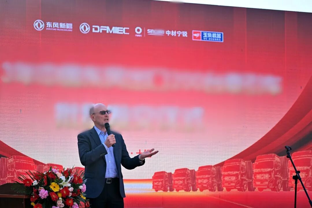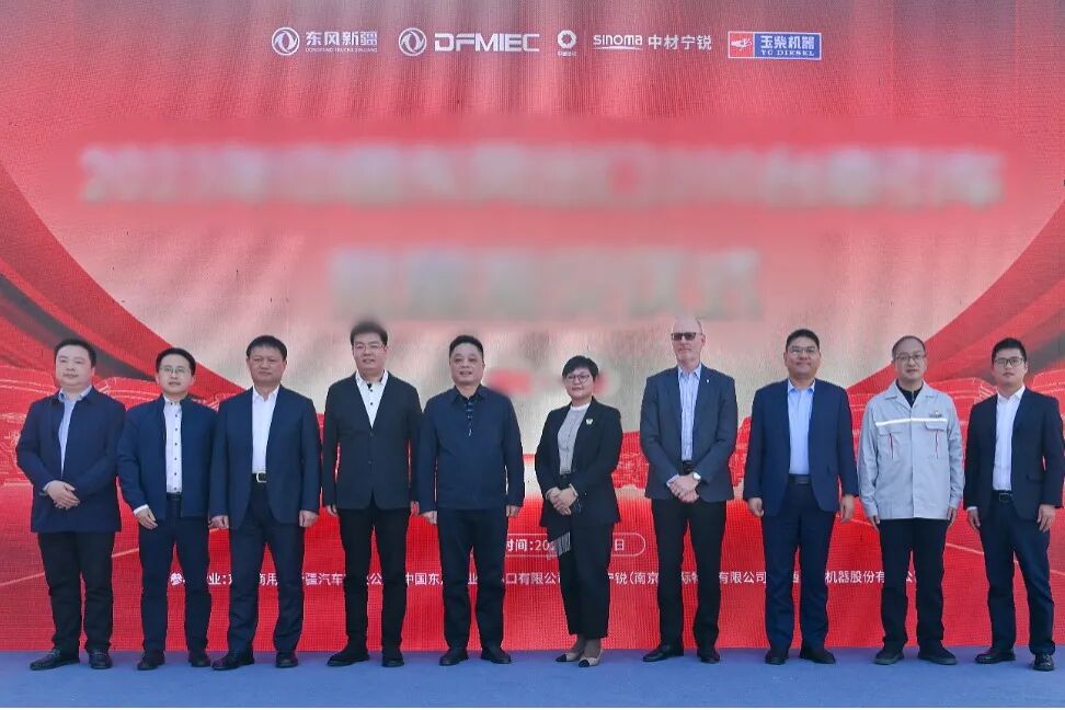 东风商用车副总经理、东风新疆董事长柯思腾,中国中材国际工程有限公司(南京)副总经理、中材宁锐(南京)国际物流有限公司董事长黄平,以及客户代表、合作伙伴共同见证这一重要时刻。