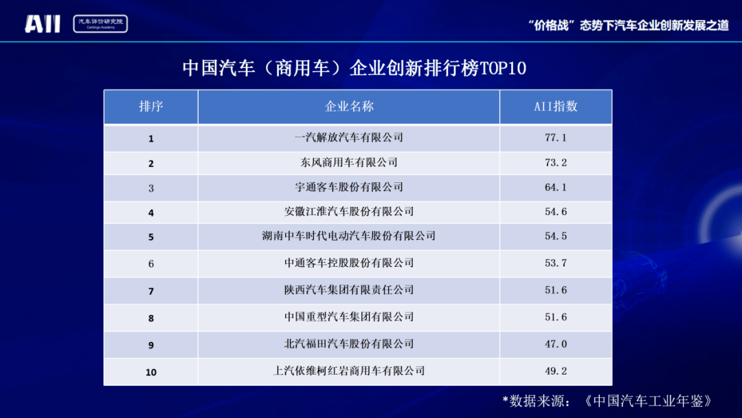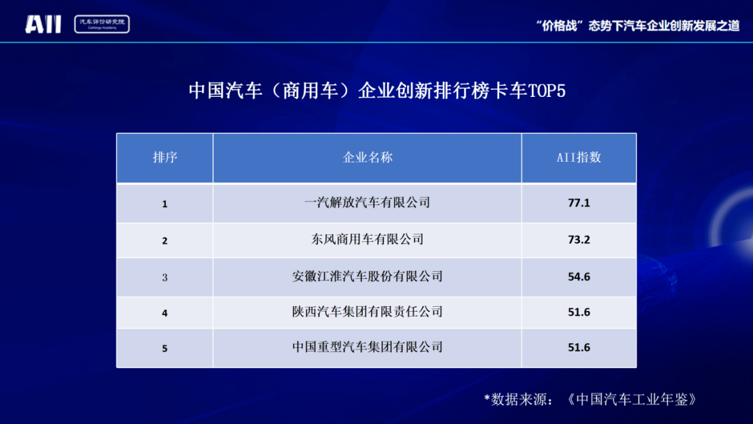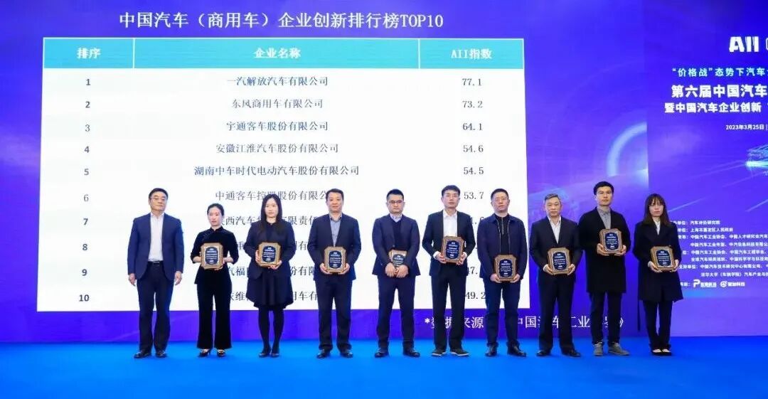 东风商用车作为国内商用车标杆企业,保持创新优势,在创新投入、经济产出和技术结构等指标上,以73.2的总分位居商用车创新企业第二名。