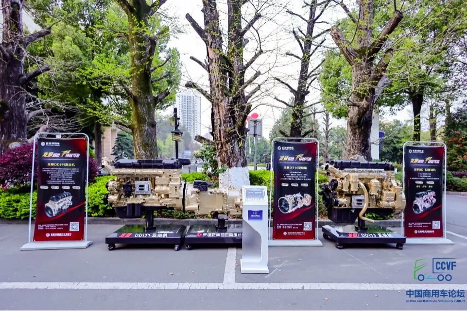 ▋会场外,整齐排列的东风商用车与东风龙擎动力总成,成为一道亮丽的风景线
