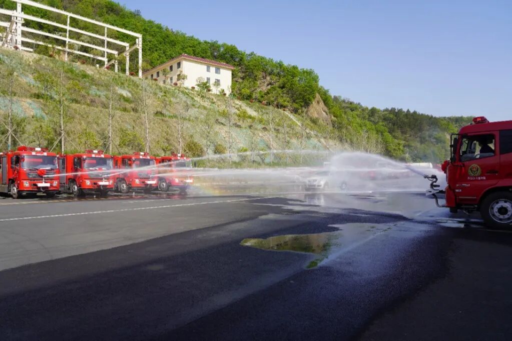 交付现场,东风天锦应急救援车分别针对路面冲洗保洁、民房火灾、森林火灾、汽车火灾等救援应用场景进行功能展示和演习。
