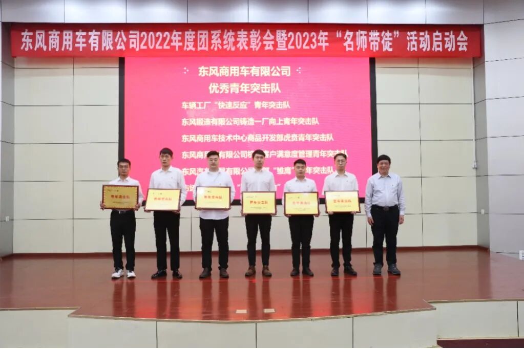 青春在燃烧,思想在生长。青春在进行,思想在茁壮。5月4日,东风商用车有限公司召开2022年度团系统表彰会暨2023年“名师带徒”活动启动会,表彰2022年度团系统各类先进集体和个人,启动2023年“名师带徒”活动,激励公司广大团员青年苦练本领、勇挑重担、积极作为,为公司品牌向上战略实现新突破、重塑商用车行业领先优势贡献青春力量。