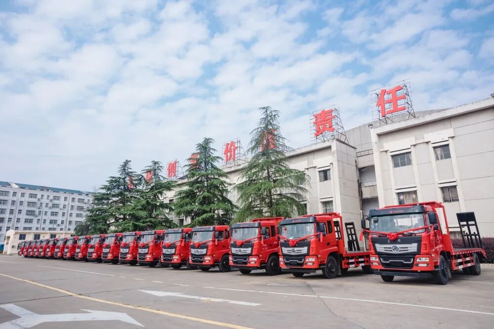 5月25日,“聚合力 强信心 ‘锦程’万里 ‘龙擎’天下”东风低平板车交车仪式在东风随州专用汽车有限公司举行。100辆搭载龙擎动力的东风低平板车整装待发,即将交付客户。