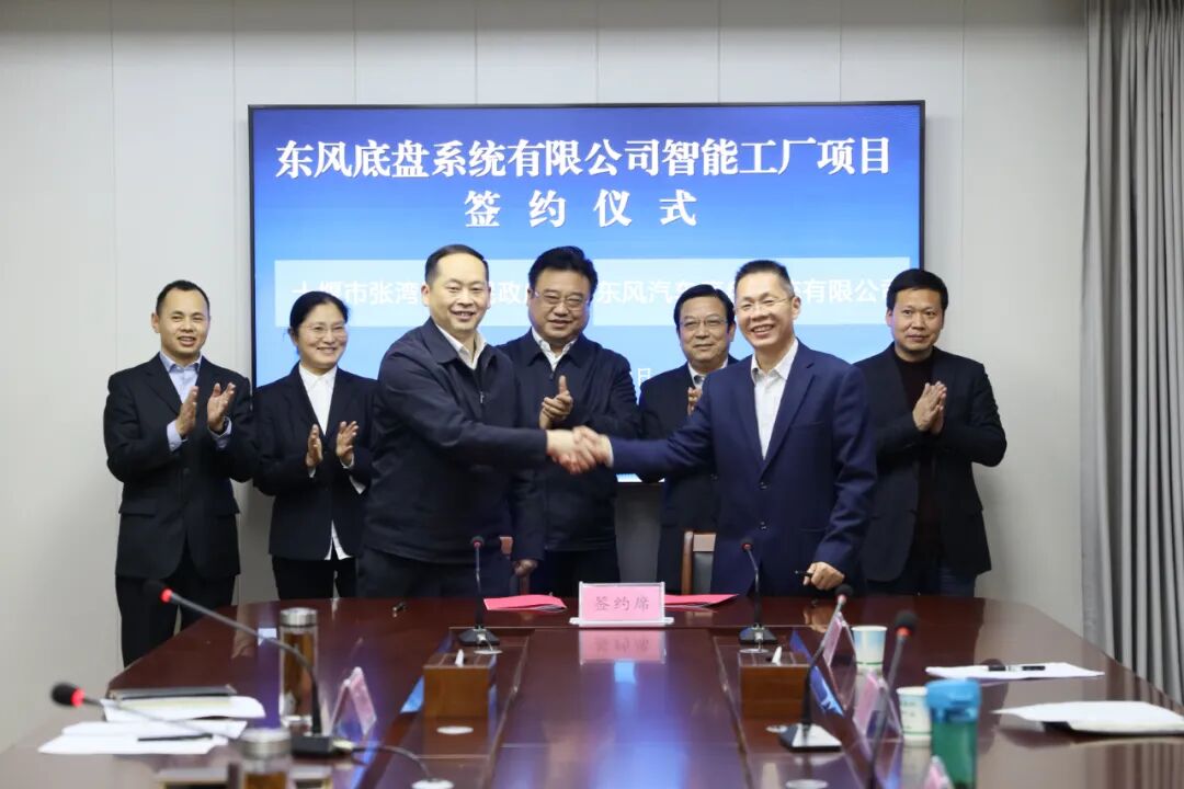 ▲2022年11月29日,东风汽车底盘系统公司与十堰市张湾区政府签署《东风汽车底盘系统有限公司智能工厂项目建设合作协议》