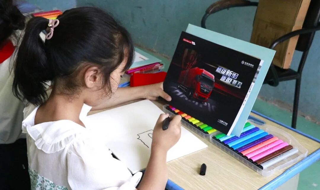 “我最喜欢红色了,我要涂个红色的东风车。”