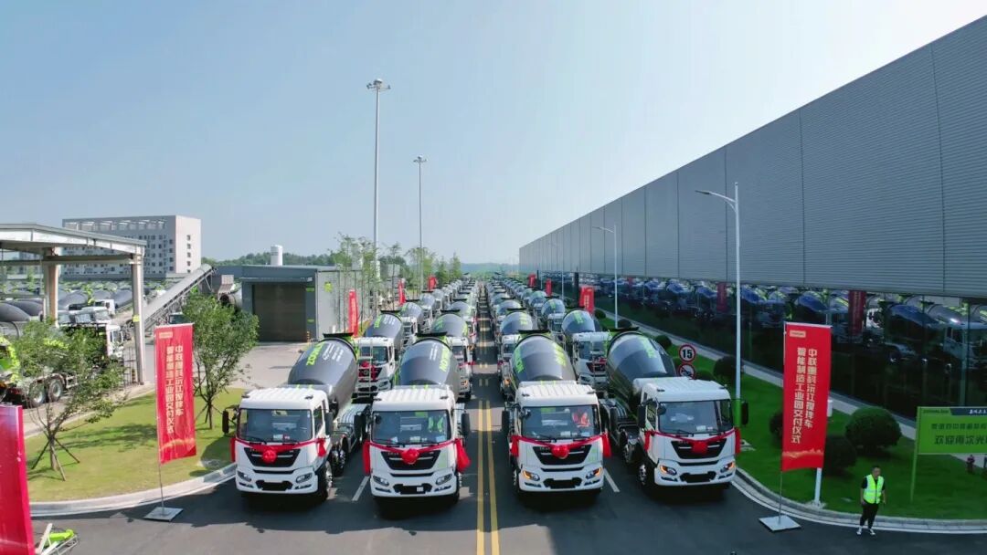近日,东风商用车与中联重科联合开发的“凌冠”系列轻量化搅拌车批量交付仪式在长沙举行。100辆东风天锦极致轻量化搅拌车整装待发,将全面助力客户实现焕新升级,踏上高效可靠、绿色智能的高质量发展新征程。
