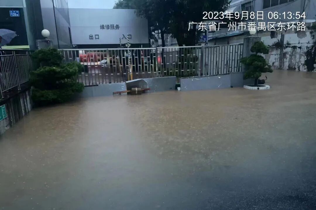 和深圳百公里之隔的广州,同样经历了今年以来最强暴雨的侵袭。9月7日开始,番禺区出现特大暴雨,不少路面和店面被淹。