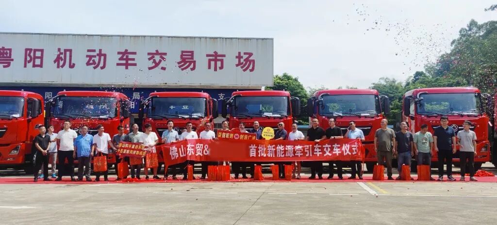 佛山东贸店两天内连续举办两场交付活动。在向拥有60多辆东风商用车的佛山客户交付了首批5辆东风天龙KL后,又和广州物流客户签订50辆东风天龙KL新能源牵引车意向合同,并交付首批15辆。