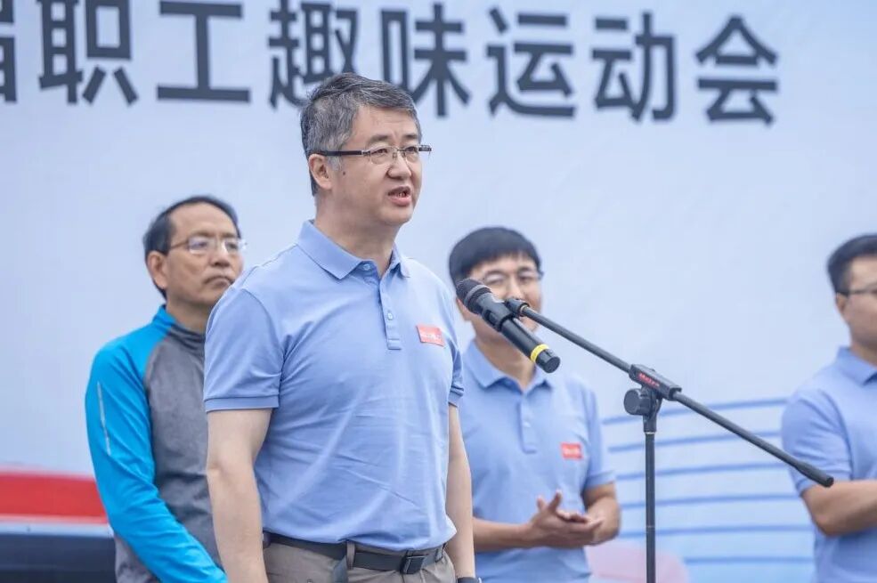 陈向阳宣布车辆工厂第二届“五年征程再启航 品牌向上续华章”职工趣味运动会开幕。