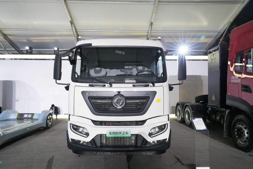 车辆搭载东风公司自主燃料电池系统,采用高倍率动力电池、少挡AMT变速箱、高效五合一集成控制器、双源电动液压转向设计、整车能量管理策略等,动力输出稳定、驱动集成高效、驾乘安全放心、氢耗节约明显。