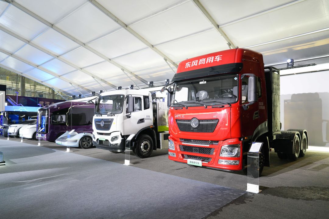 活动外场,东风商用车有限公司2款新能源商品也亮相展出,以科技跃迁新成果和绿智全场景应用方案为东风智能新能源品牌打CALL。