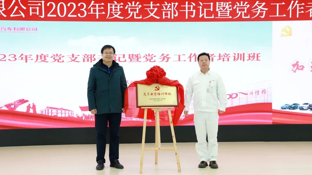 东风本田130余名基层党组织书记、专兼职党务人员参加培训。公司党委工作部部长靳军,东风本田党委书记、工会主席王彬彬为东风本田党员教育培训阵地揭牌。