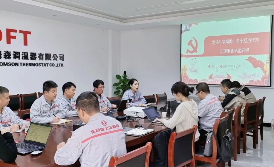东风富士汤姆森调温器有限公司党委坚持用党的创新理论统一思想、统一意志、统一行动,焕新思维,坚持发扬自我革命精神,鼓足干事创业的精气神,全力推动高质量发展。截至目前,东风汤姆森公司党委及行政班子5位成员已经全部完成讲党课、专题调研计划。