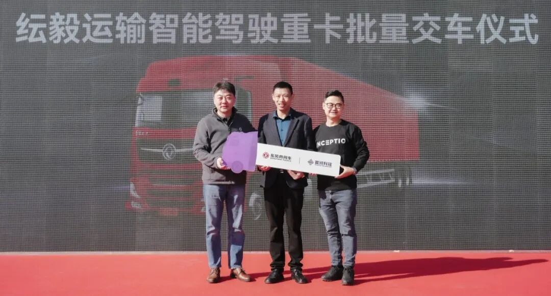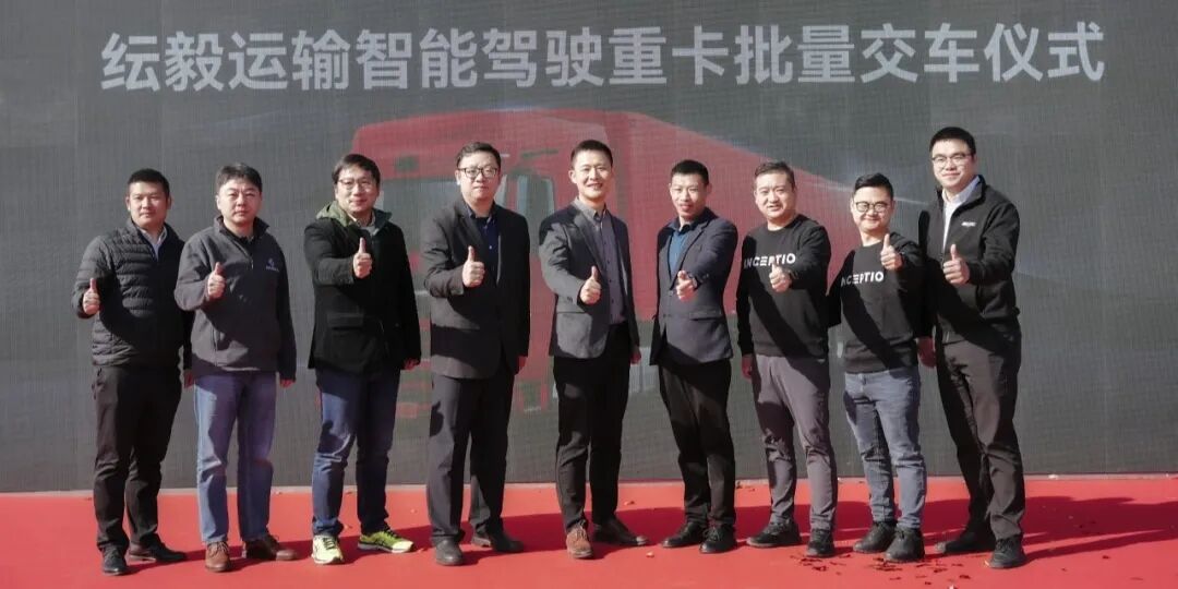 这是三方协作下智能驾驶技术规模化商用落地的重要里程碑,也是迄今为止行业内最大批量的单次智能重卡交付,三方签订的总采购量为300辆。