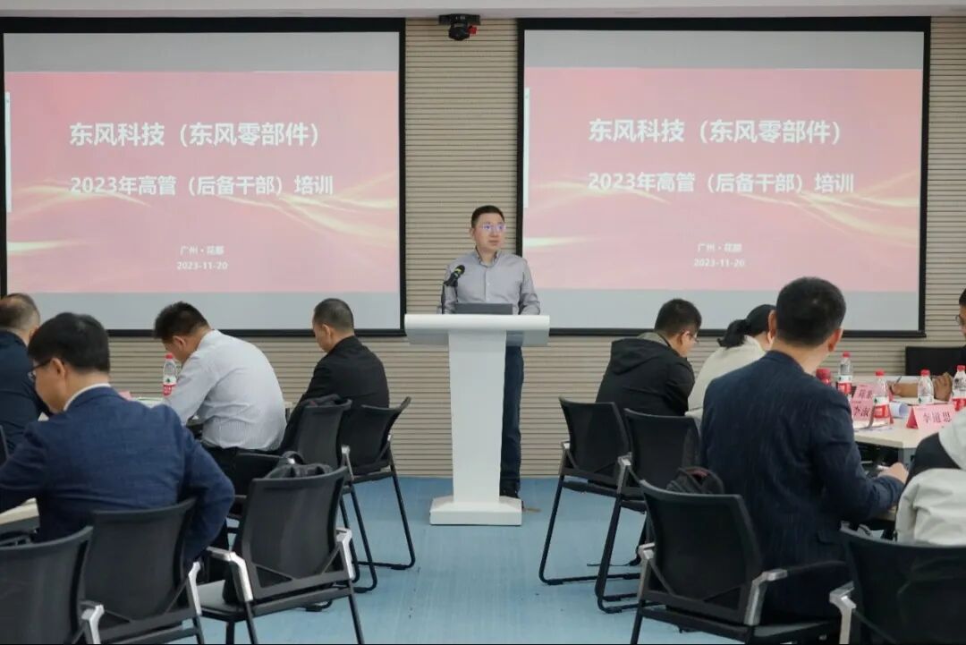 ▲东风科技(东风零部件)党委委员、东风电子科技股份有限公司总经理助理、人力资源部部长张永学,东风日产乘用车公司经营管理总部人事总务部副部长廖磊出席开班仪式,东风科技&东风零部件分管制造的高管、在库的副部长级后备干部参加培训