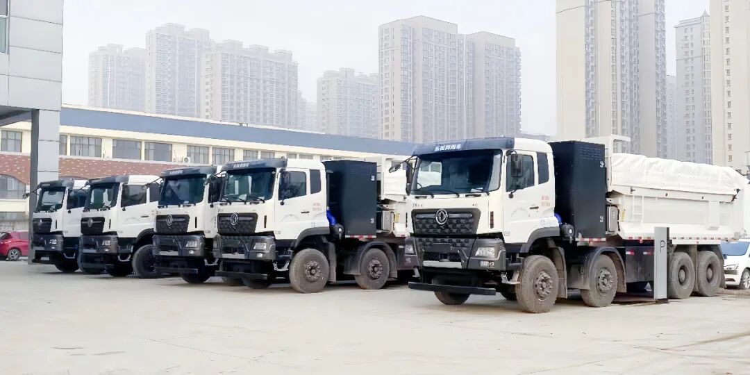 东风商用车向济南XT集团有限公司交付 10 辆东风天龙KC氢燃料城市渣土自卸车。