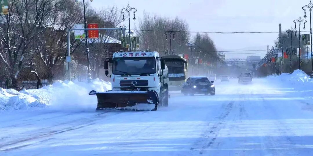 东风天锦铲雪车在重点区域、重点路段开展梯队式除雪作业,有力保障了群众出行安全。