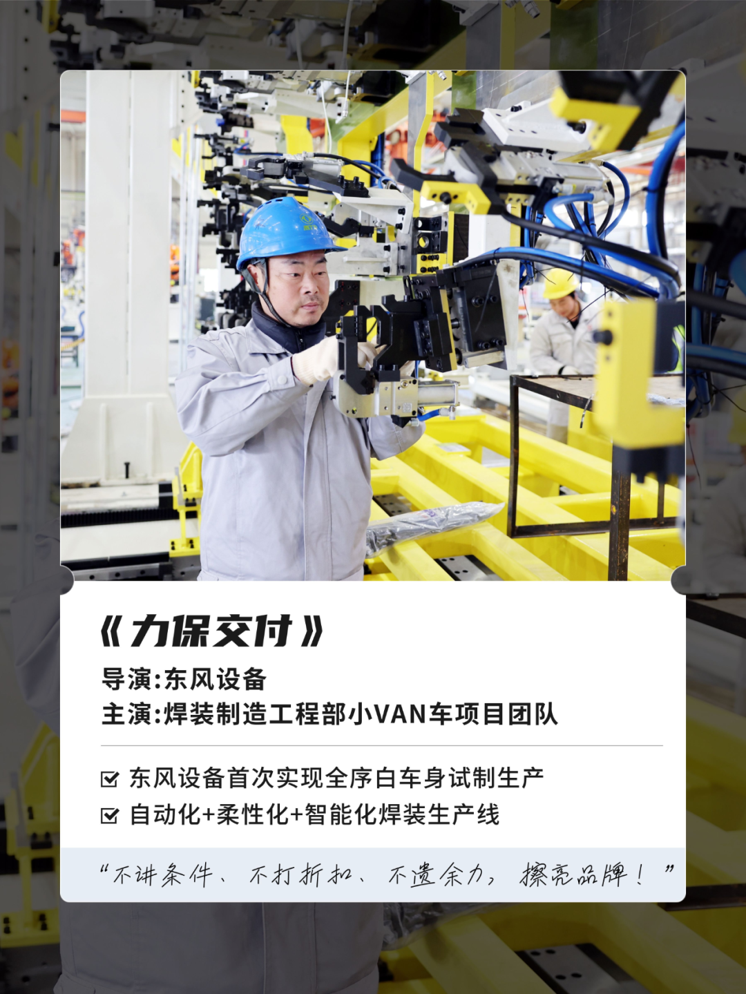 小VAN车项目生产线是自动化+柔性化+智能化的焊装生产线,涉及2个平台、10种车型,设备故障率要求低于2.48%,对共用性和兼容性的要求很高。项目团队每日坚持早、晚碰头会进行质量总体盘点,还通过“自检+抽检”的方式,保证线体装配质量。“我们把遇到的问题点梳理成册,当天发现当天解决,第二天早会进行再培训,保证同类问题不再出现。”宋建设介绍,“不讲条件、不打折扣、不遗余力,为擦亮品牌,竭尽挥洒汗水与力量!”