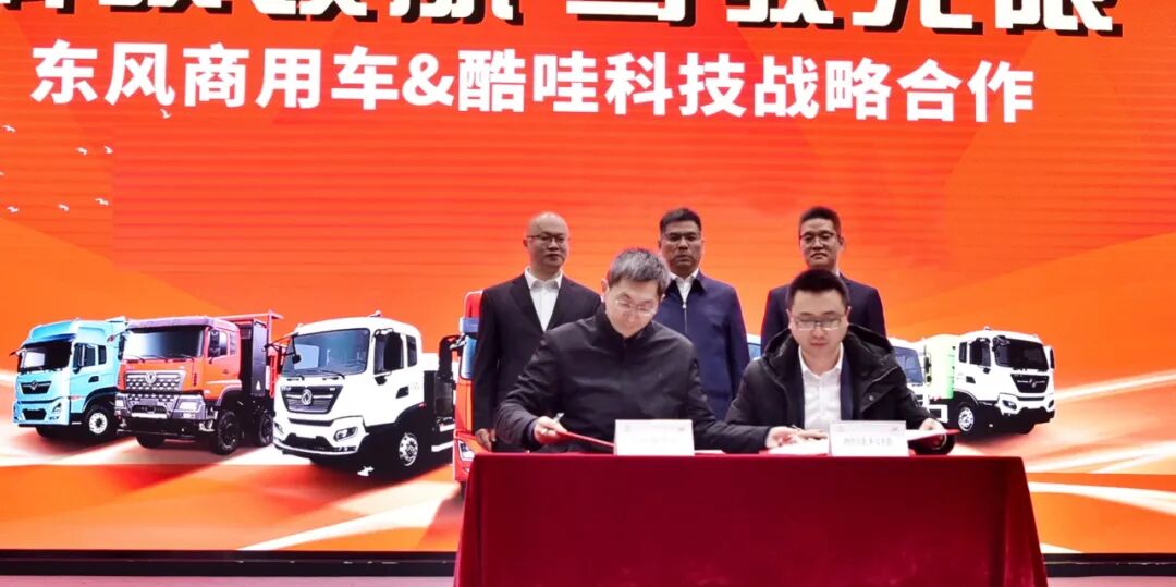 1月22日,东风商用车与酷哇科技有限公司、航天锂电科技(江苏)有限公司,分别进行战略合作签约与首批新能源车辆交付。