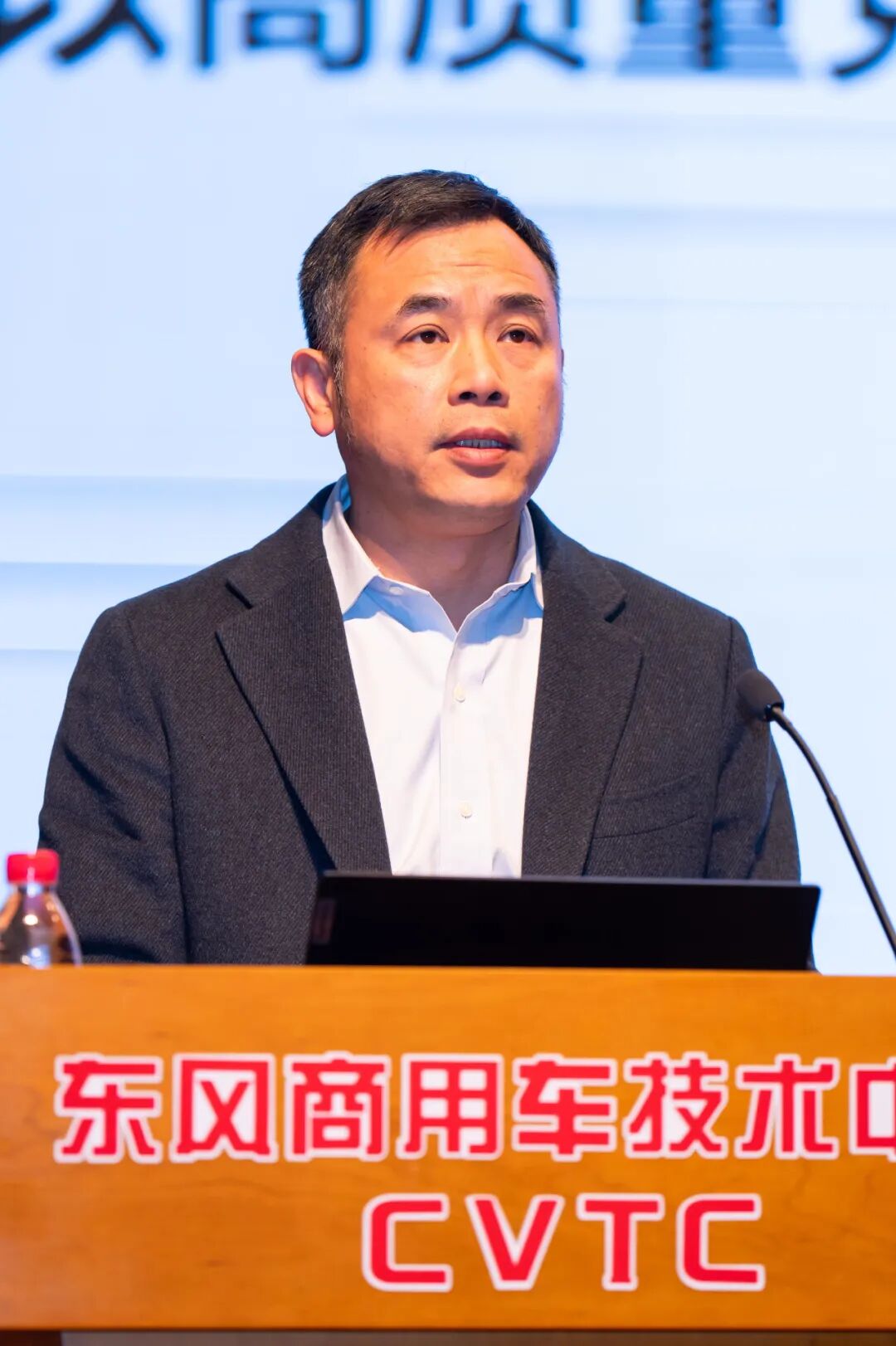 东风商用车总经理张小帆,党委副书记、工会主席陈向阳,副总经理吴怀主出席会议。东风商用车技术中心领导班子成员、平台总师、各部门负责人以及先进代表参加会议。