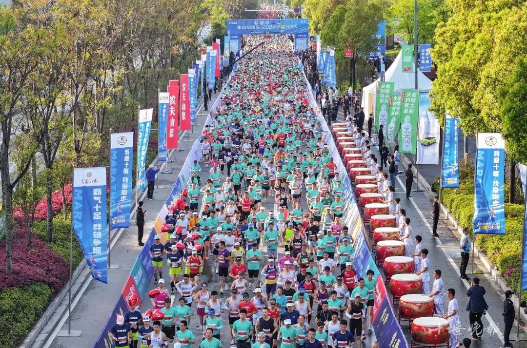 4月14日,由东风商用车有限公司总冠名的东风商用车•2024十堰马拉松热力开跑。来自世界各地的2万名跑友,奔跑在春光里,点亮了十堰这座“仙山秀水汽车城”。