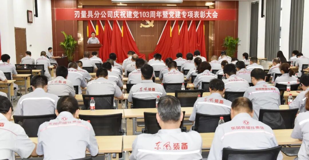 东风汽车零部件(集团)有限公司刃量具分公司召开庆祝建党103周年暨党建专项表彰大会,新党员庄严宣誓,老党员重温入党誓词,先进集体和个人受到表彰。