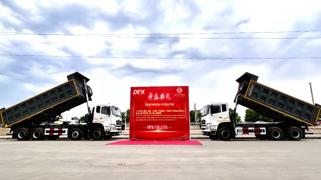 在大客户交车仪式暨东风汽车哈萨克斯坦旗舰店开业庆典现场,东风汽车隆重推介了DONGFENG GX、KL牵引车及KC工程自卸车等明星产品。