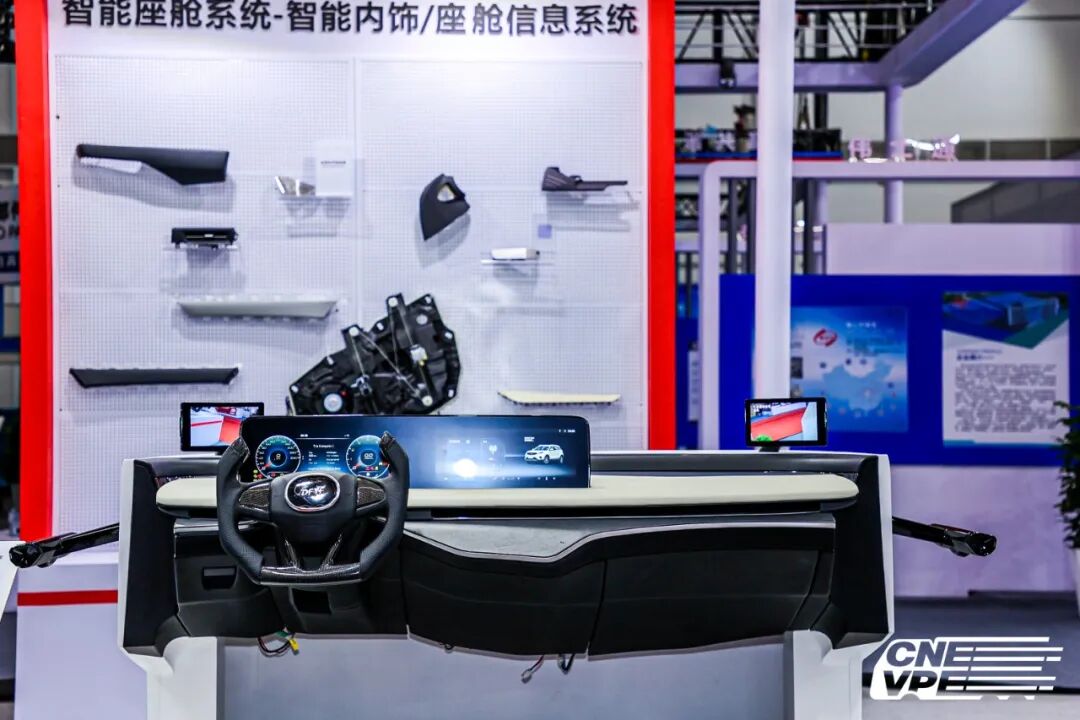 展示智能座舱系统、智能底盘系统,包括薄型仪表板、智能语音交互、电子外后视镜、电动功能件、场景氛围,智能触控开关等,仪表板可实现座舱内饰的局部域控制,与整车域控制进行快速匹配。