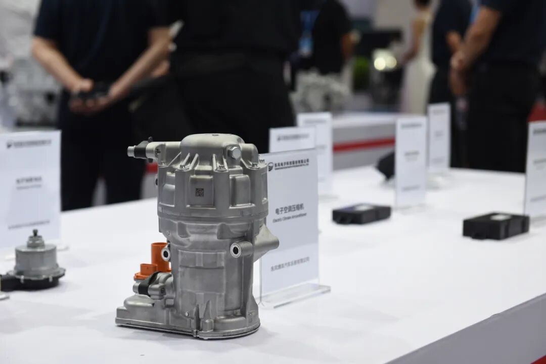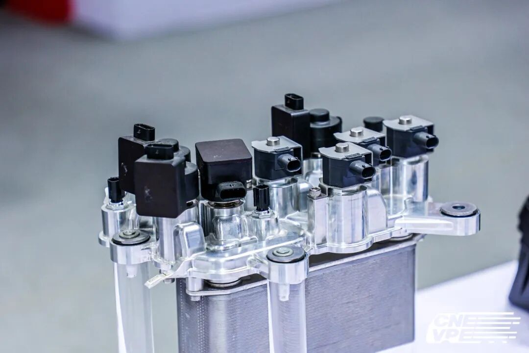 展示高压风扇总成、电子油泵电机、电动水泵、商用车热管理一体机组等,其亮点在于功能集成化,将电池热管理和乘员舱热管理巧妙地融为一体。