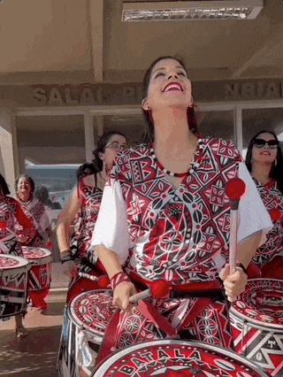 几十名巴塔拉艺术家演奏热情奔放的巴西特色鼓乐。
