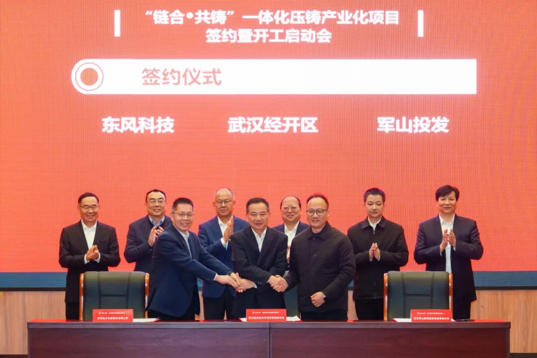 会上,东风科技、武汉经开区、军山投发三方签署一体化压铸产业化项目合作协议,并启动一体化压铸厂房开工建设工作。以此为依托,东风科技将在整零研发一体化、产业链深度协同等方面走出新路、奋勇争先。