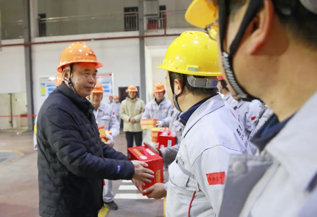在东风德纳车桥有限公司十堰工厂装配车间前桥工段,方勇向坚守一线、鏖战高产的员工送去慰问。他表示,大家要铆足干劲、攻坚克难,以积极姿态面对新的挑战,2025年再立新功。