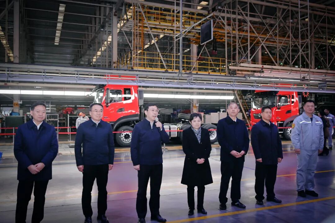 “提前祝大家新年好!给大家拜年了!”金善文一行走进东风汽车十堰基地东风商用车车辆工厂总装车间,详细了解企业生产经营、产品种类、工厂智能化建设等情况。金善文对车辆工厂始终坚持技术改善,提升生产效率,降低劳动强度,优化作业环境给予肯定,点赞企业职工展现出的奉献精神。