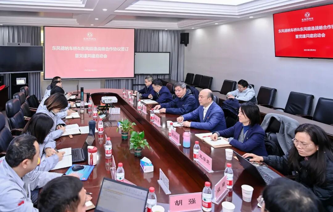 2月20日,以“‘锻’造精品 ‘桥’接未来”为主题的东风德纳车桥有限公司与东风锻造有限公司战略合作协议签订暨党建共建启动会在十堰举行。双方将通过党建共建,促进业务互融互通,实现战略互利共赢。