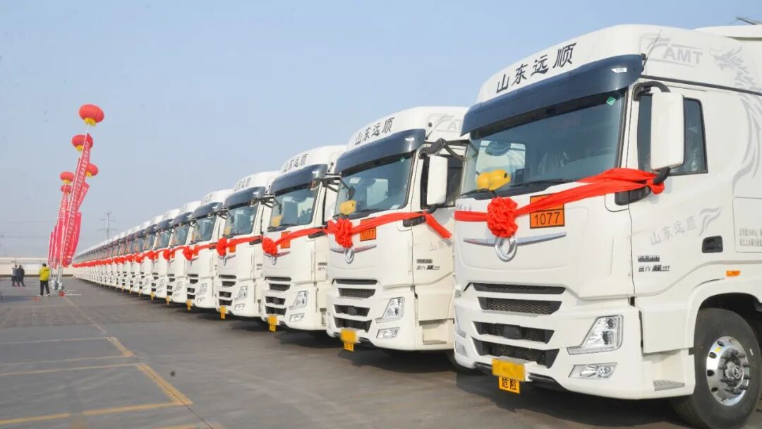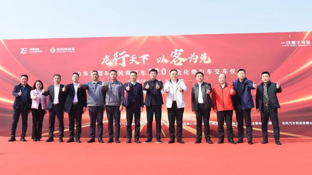 东风商用车有限公司与山东远顺运输有限公司(以下简称“山东远顺”)120辆东风天龙KX王者版危化牵引车交车仪式在山东东营举行。