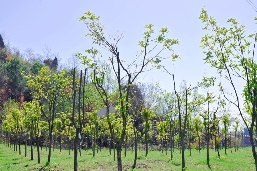 40棵桂花新苗整齐有致,迎风挺立